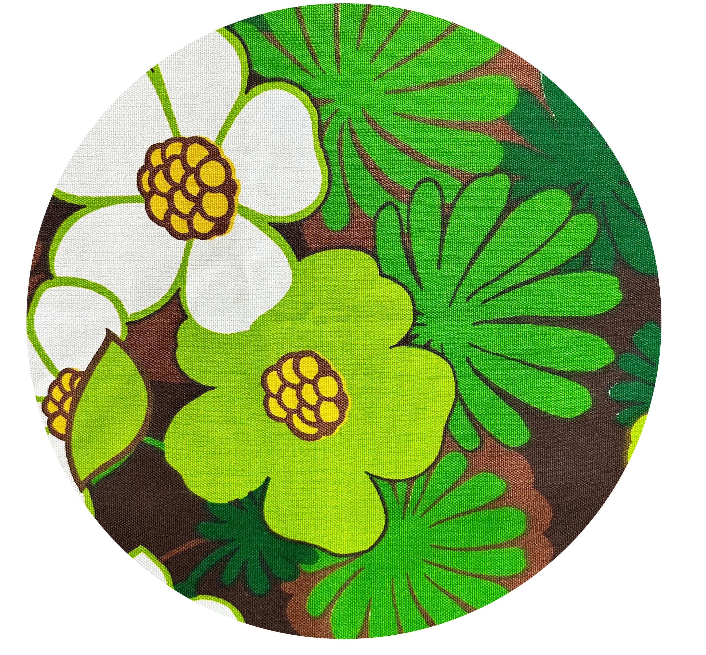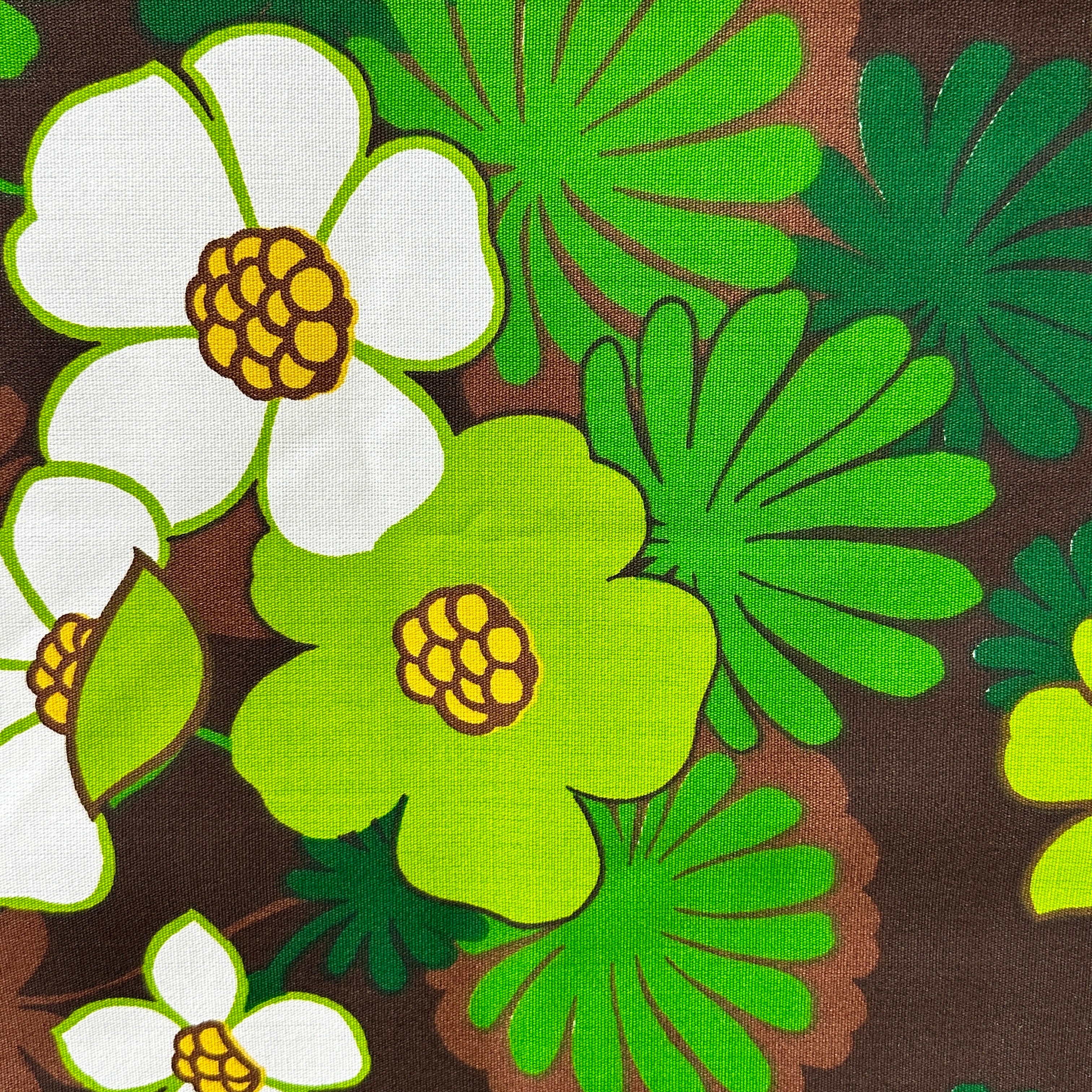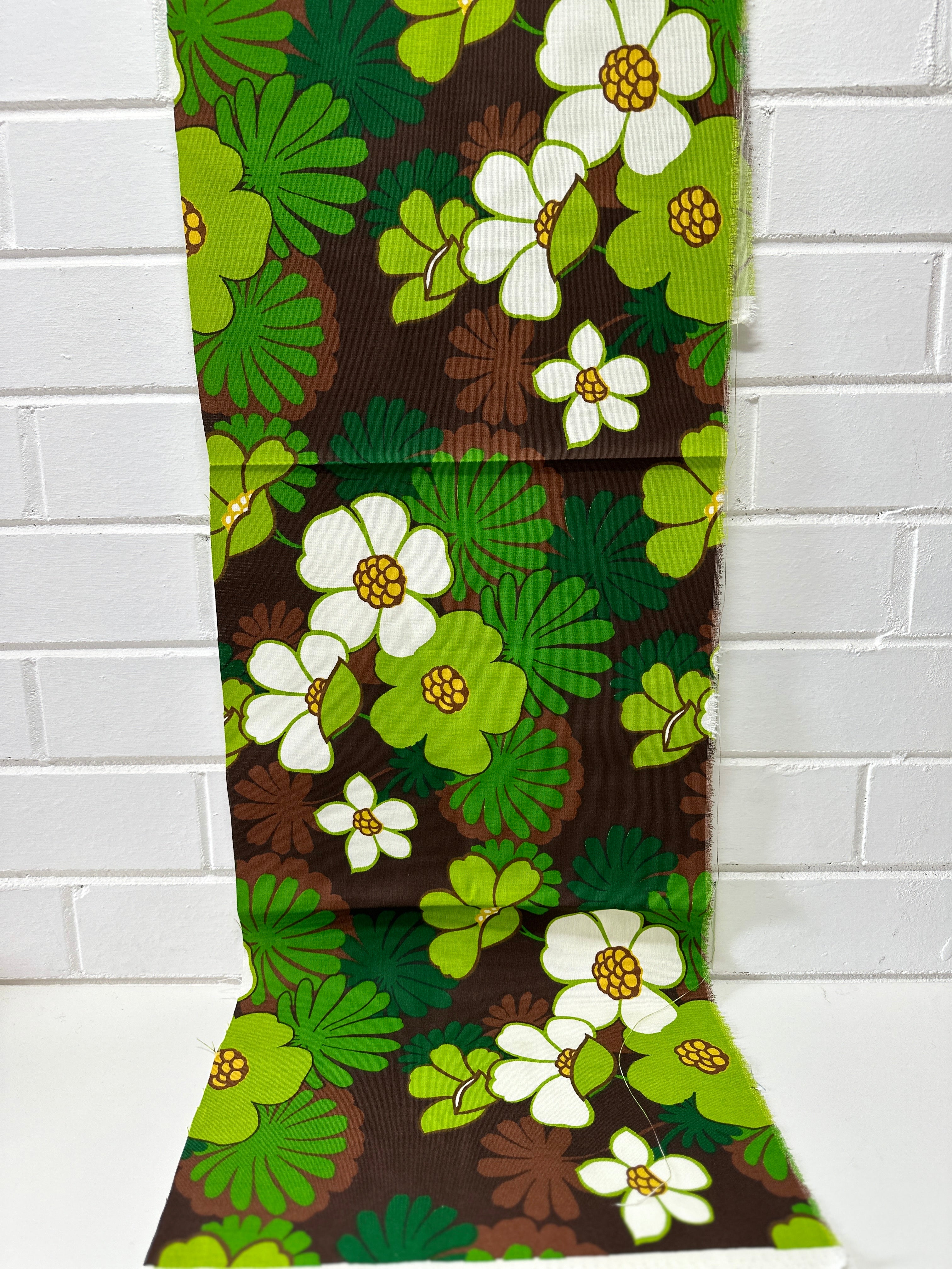 120cms RETRO Fabric Panel Green & Brown Large Bold Florals