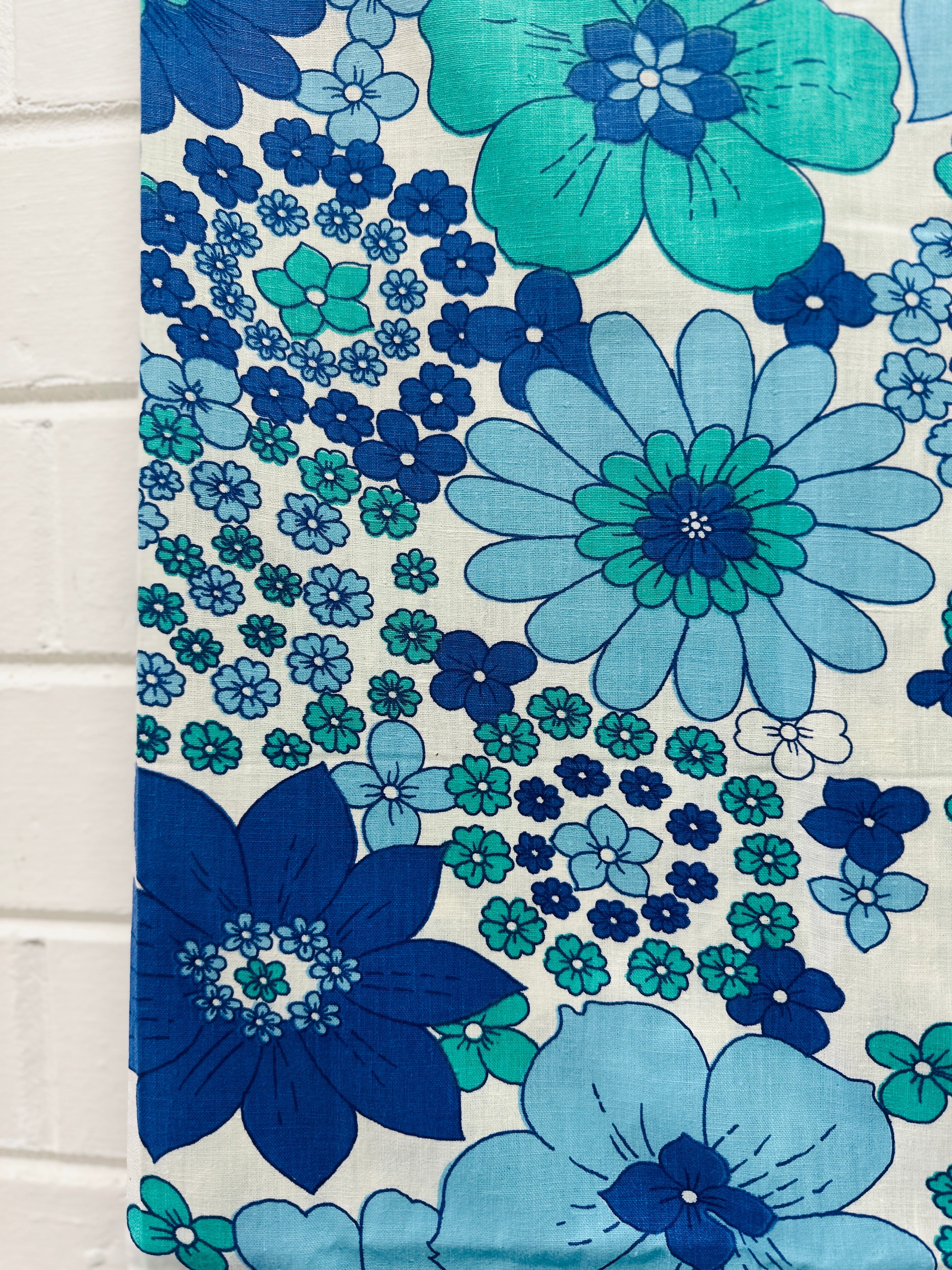 140cms All Cotton Mint Condition Blue RETRO Fabric VINTAGE