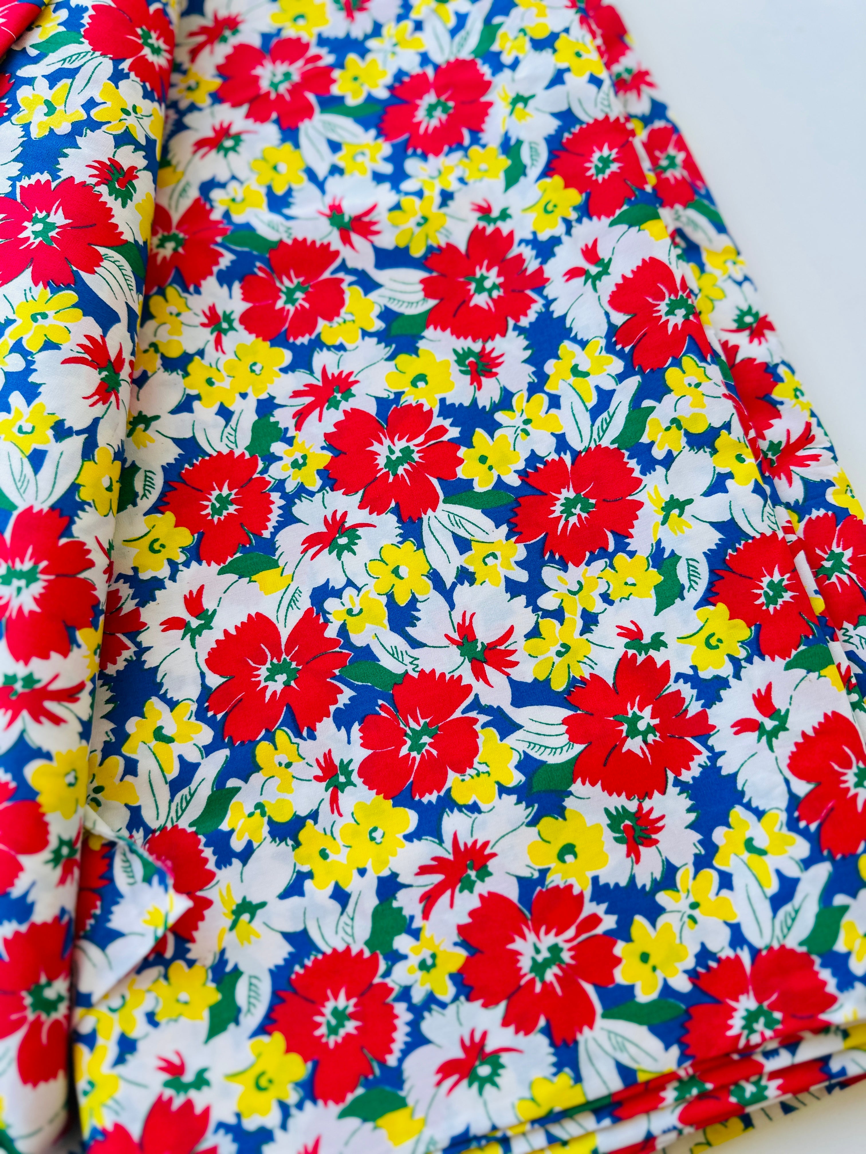 140cms Wide by The Metre Red & Blue Floral Cotton Fabric