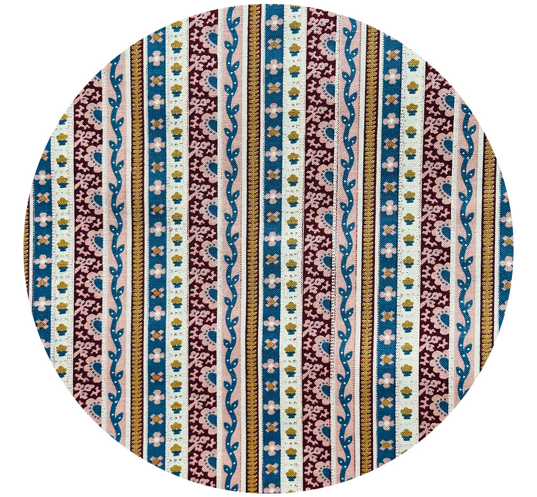 160cms Vintage Blue Stripes & Floral Fabric Cotton