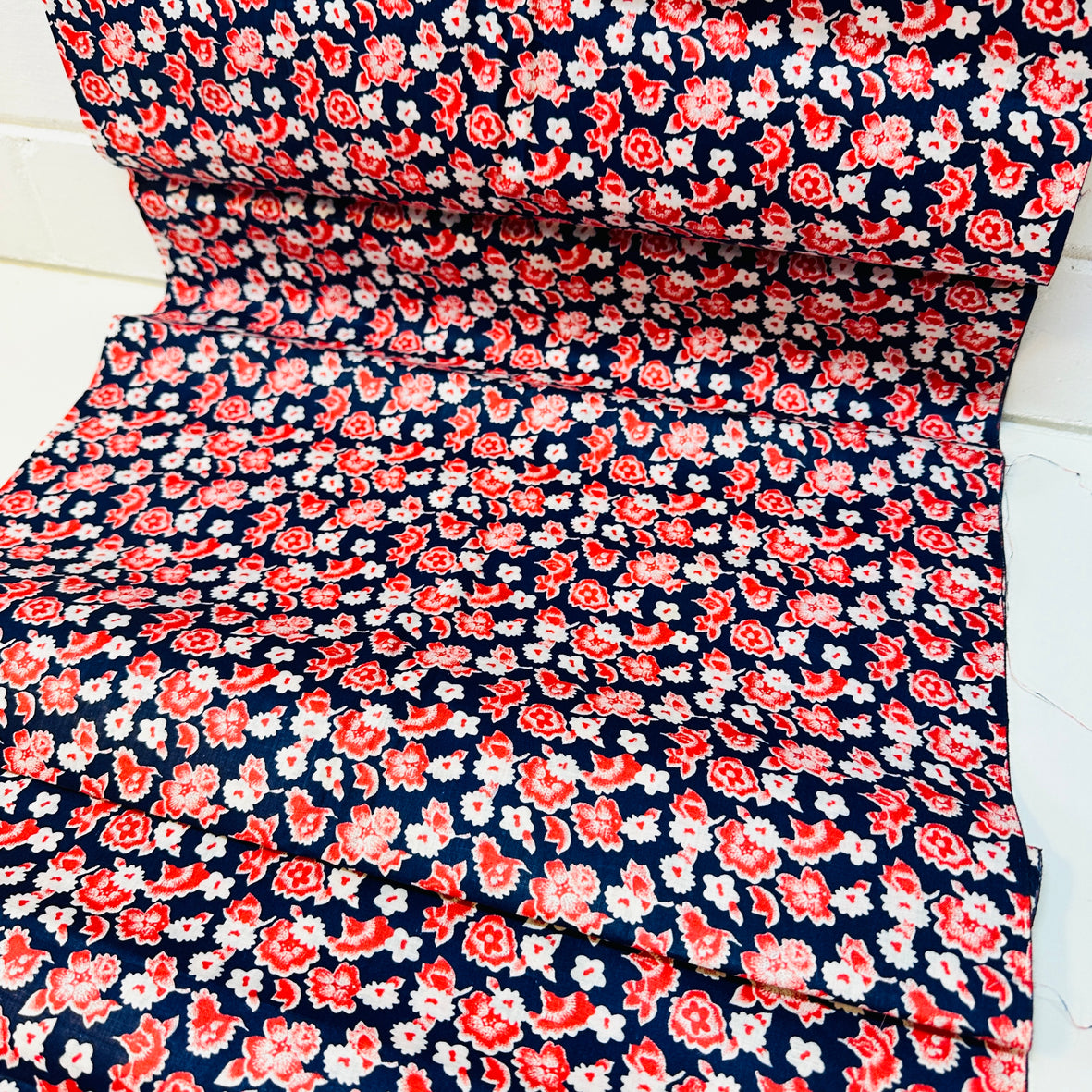 160cms Beautiful VINTAGE Navy & Red Floral Fabric