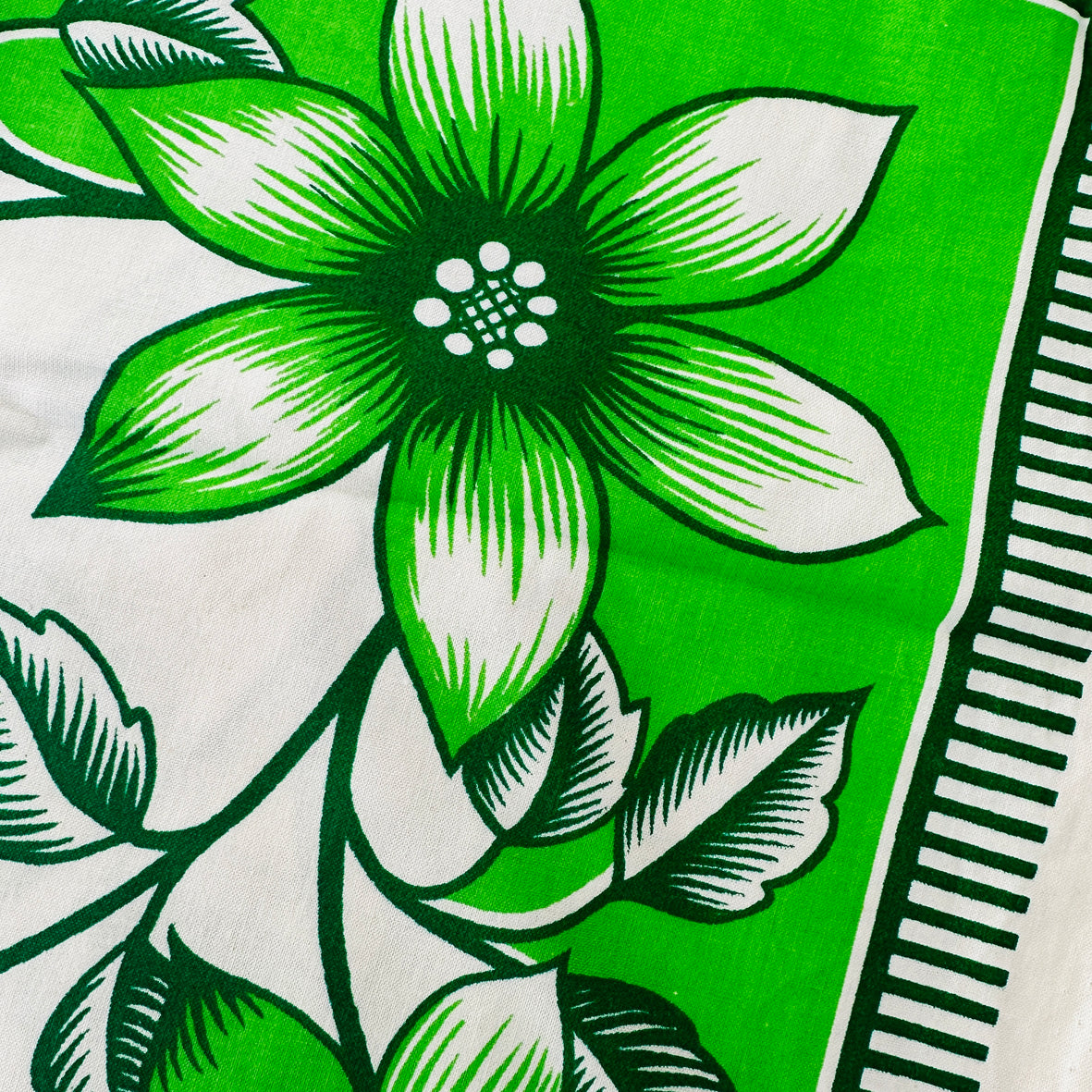 170cms Large Bold Green Floral Print VINTAGE Cotton