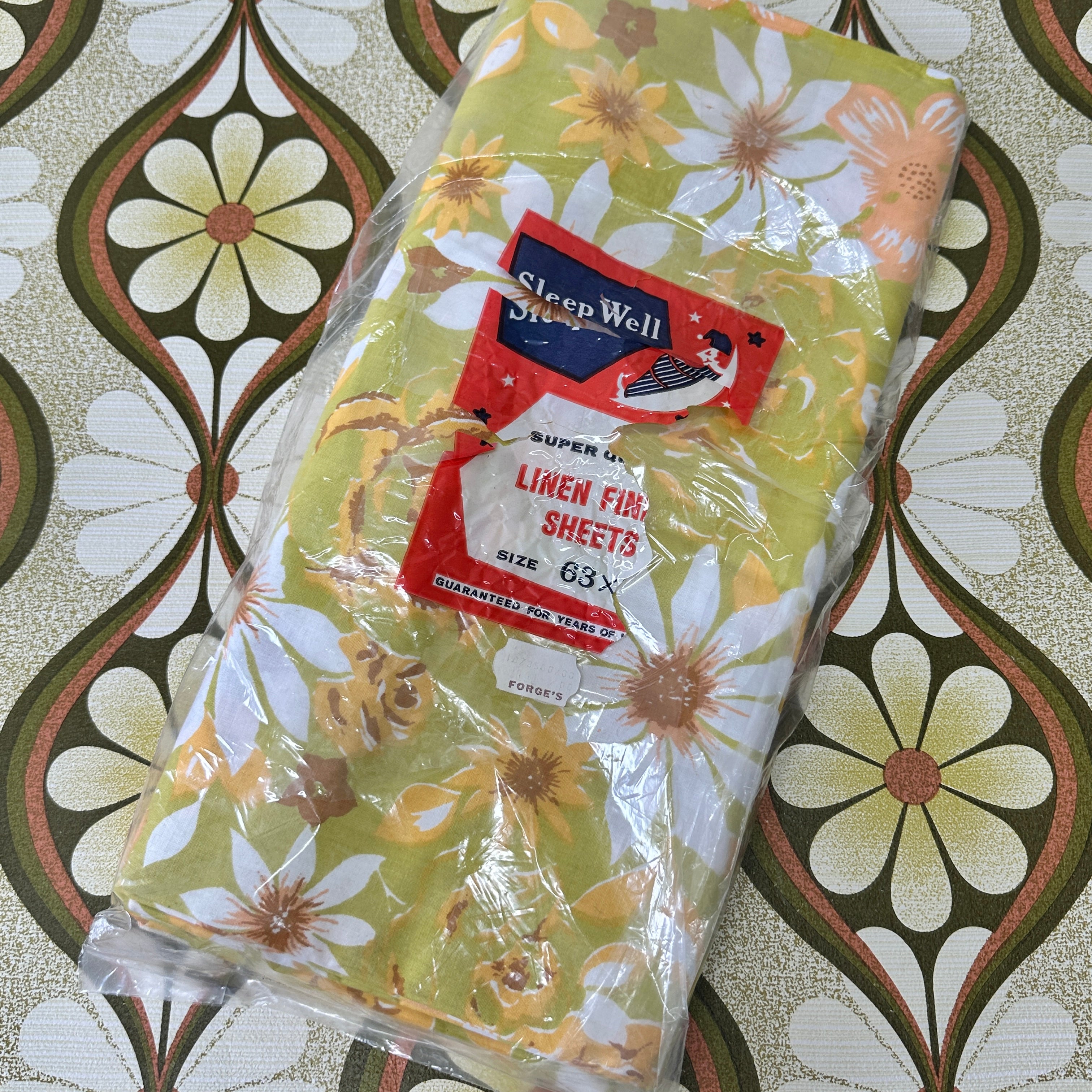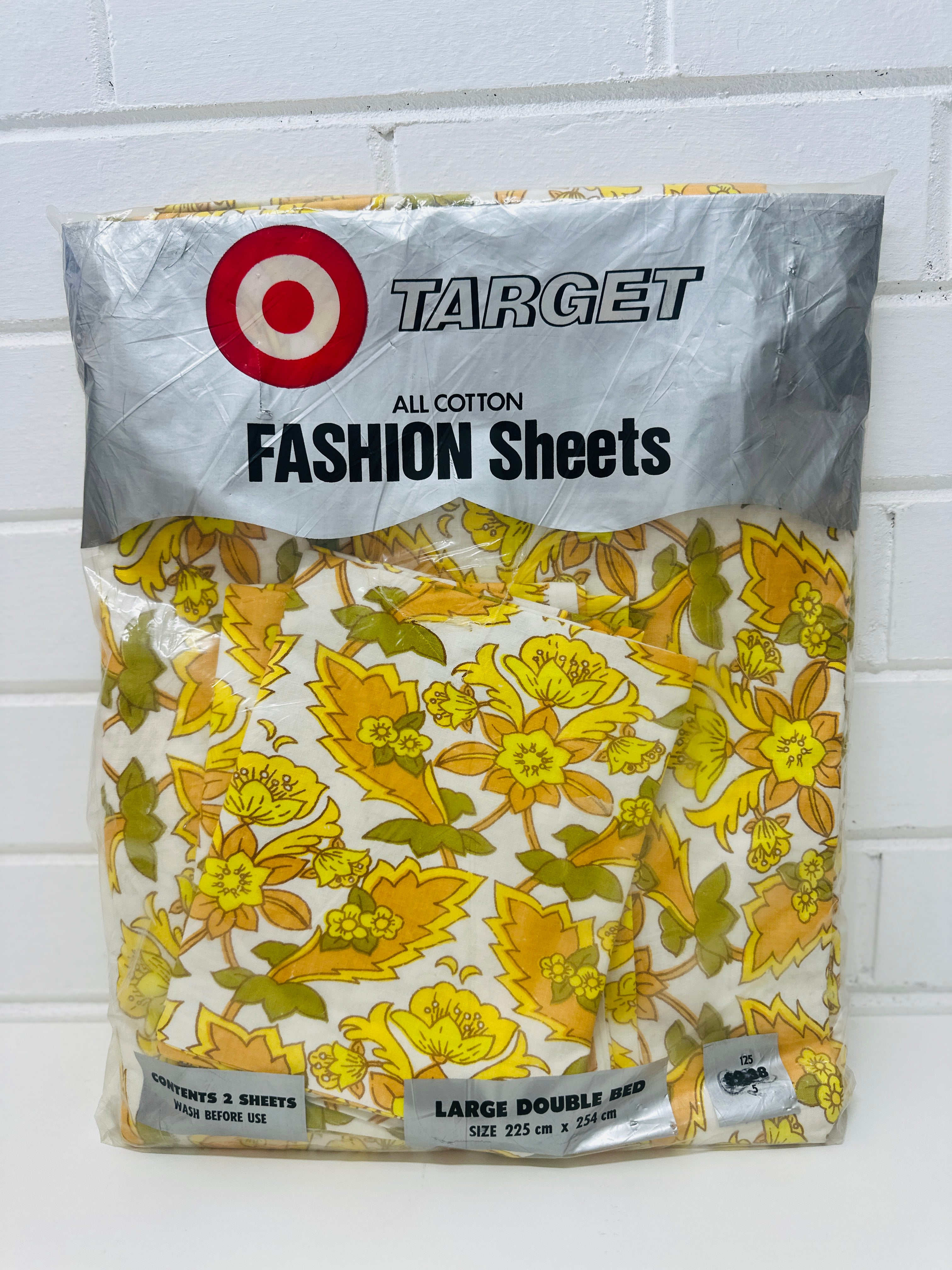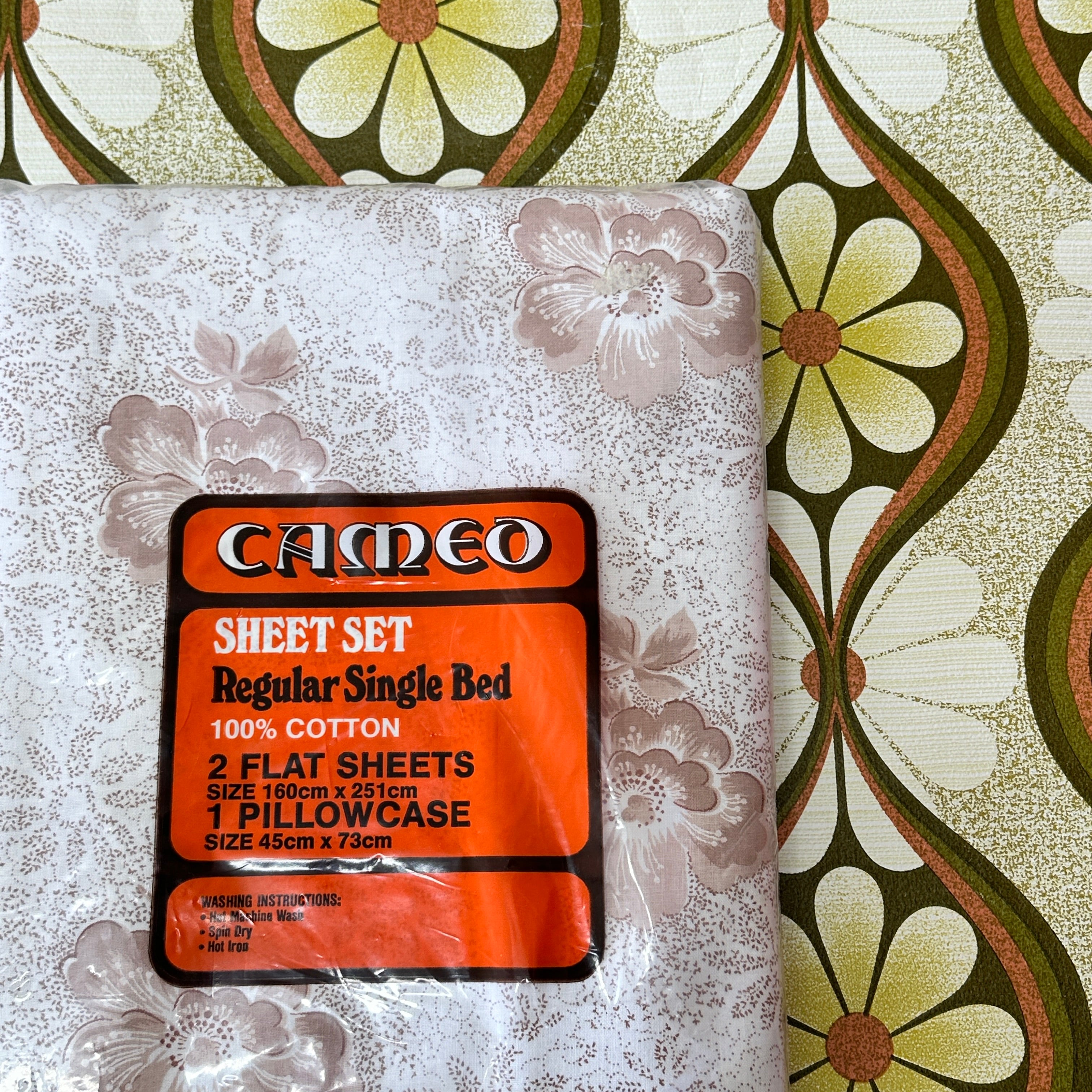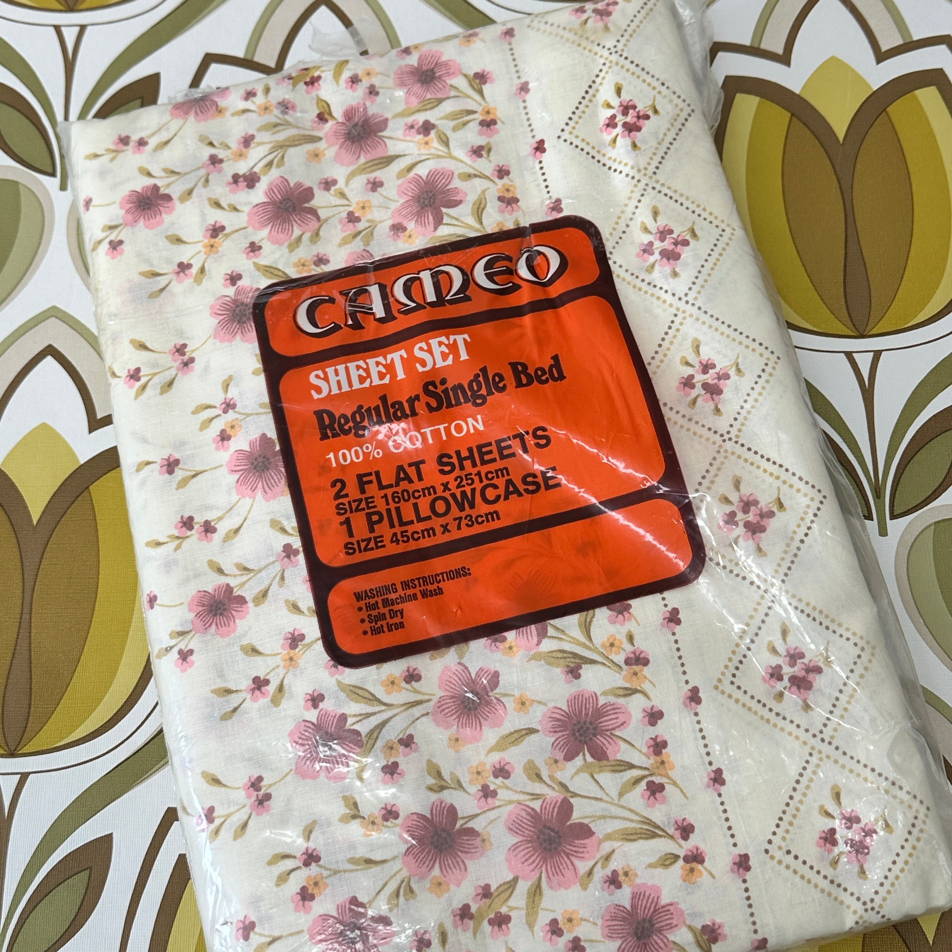 Vintage UNUSED Floral CAMEO Sheet Set COTTON