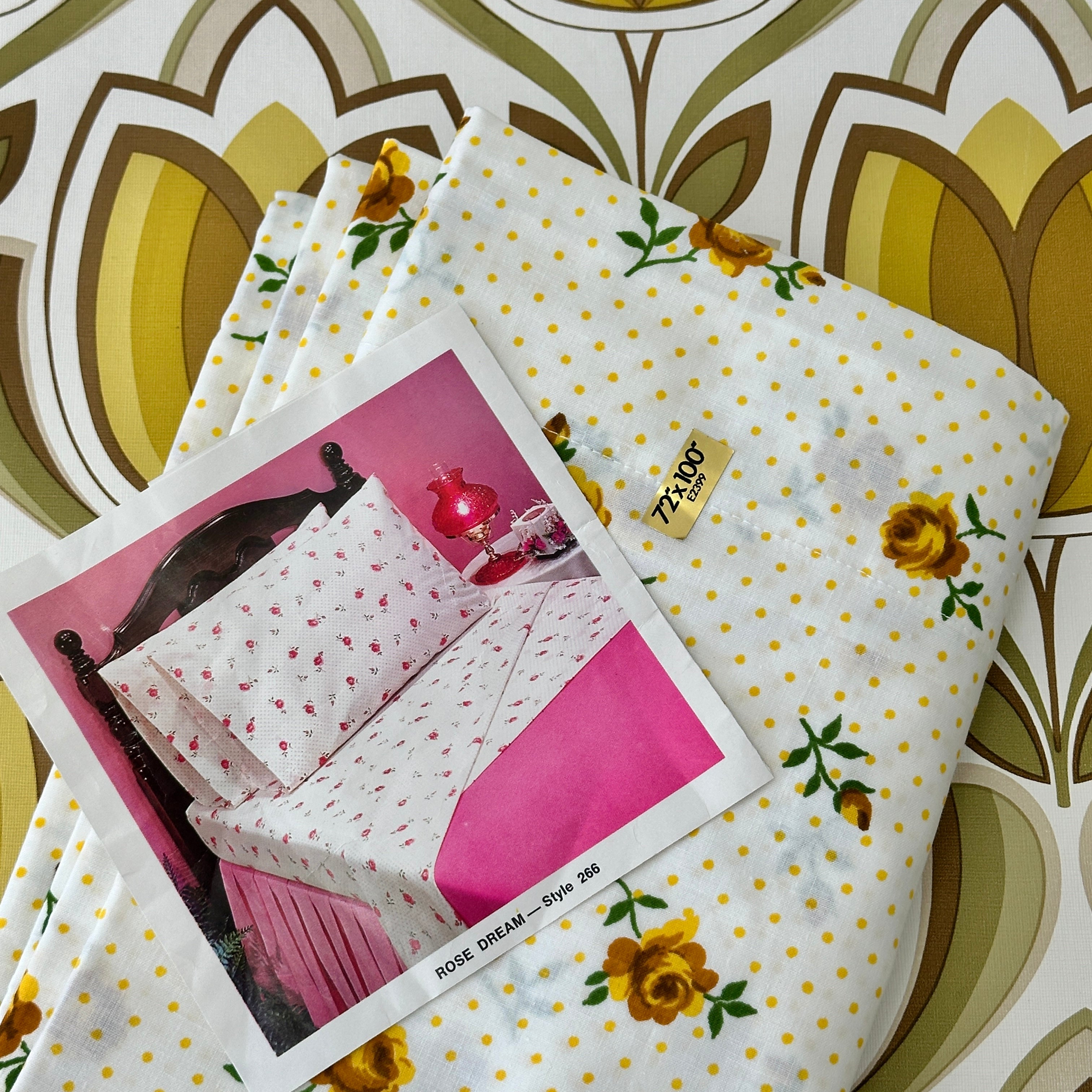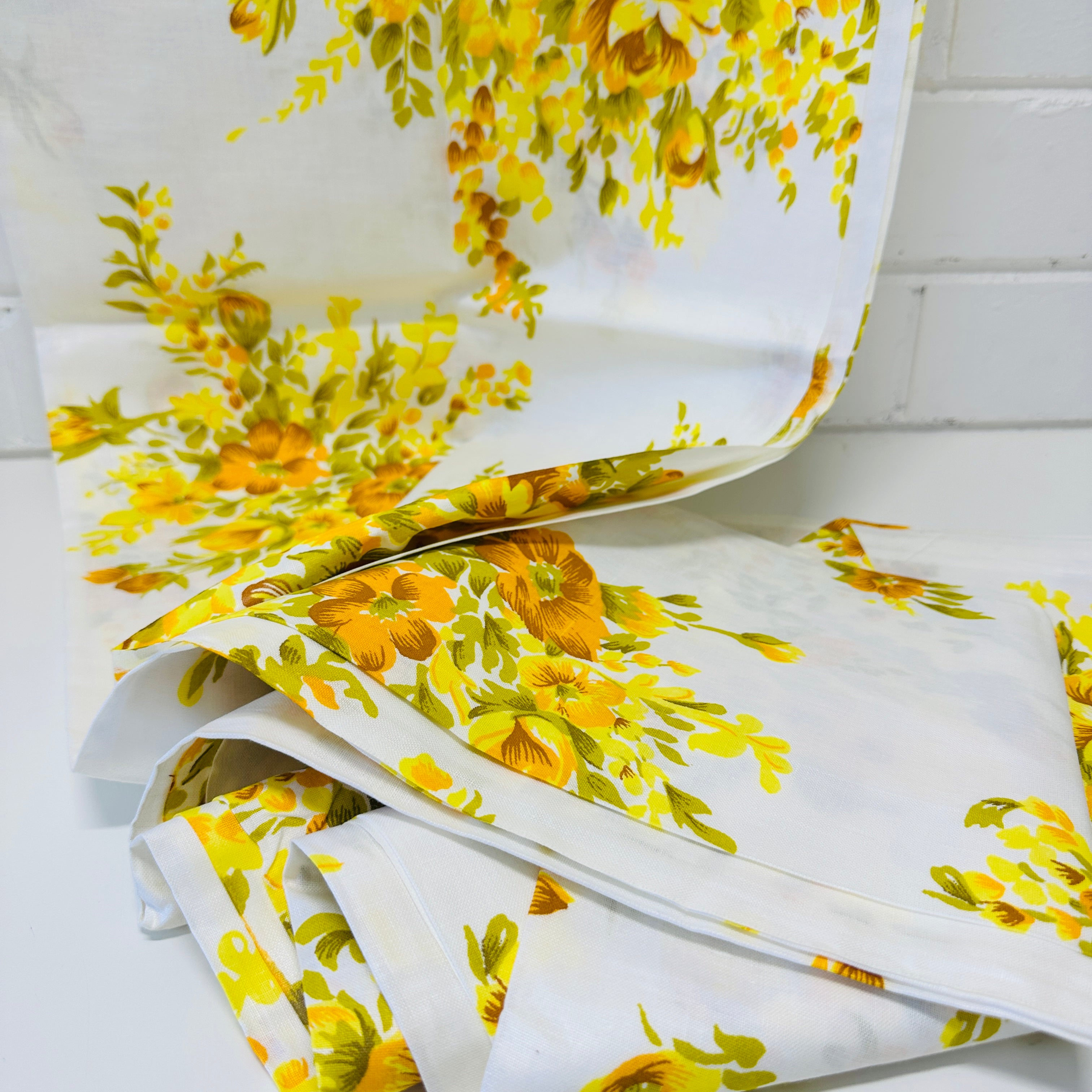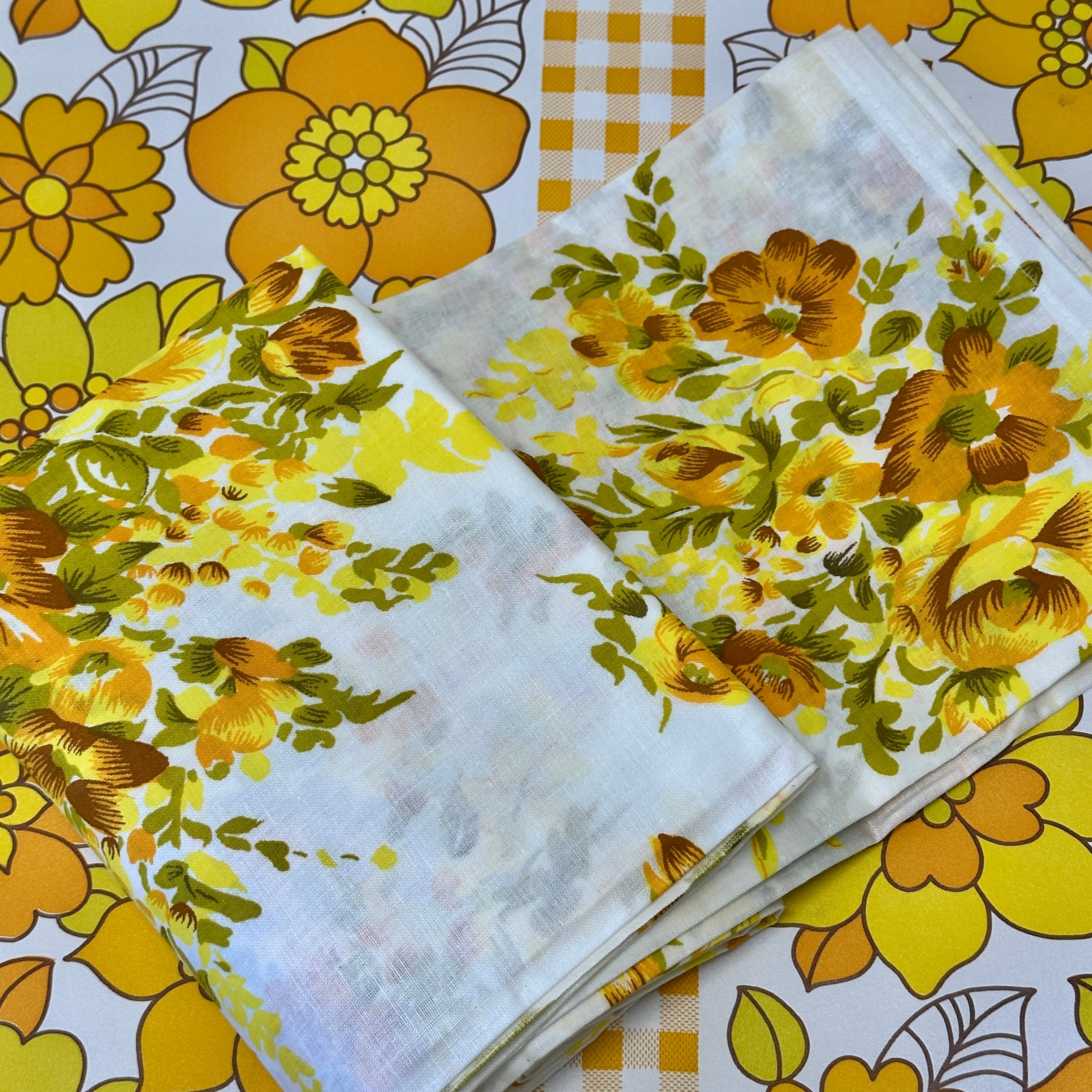 PAIR of Vintage Cotton Pillow Cases Yellow Floral Print