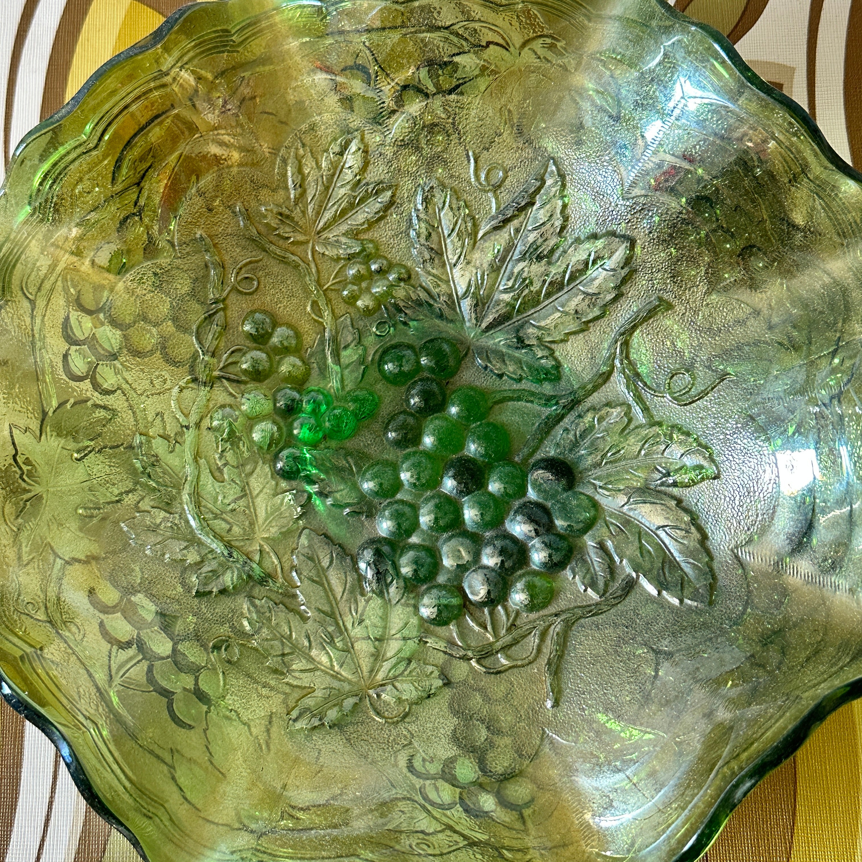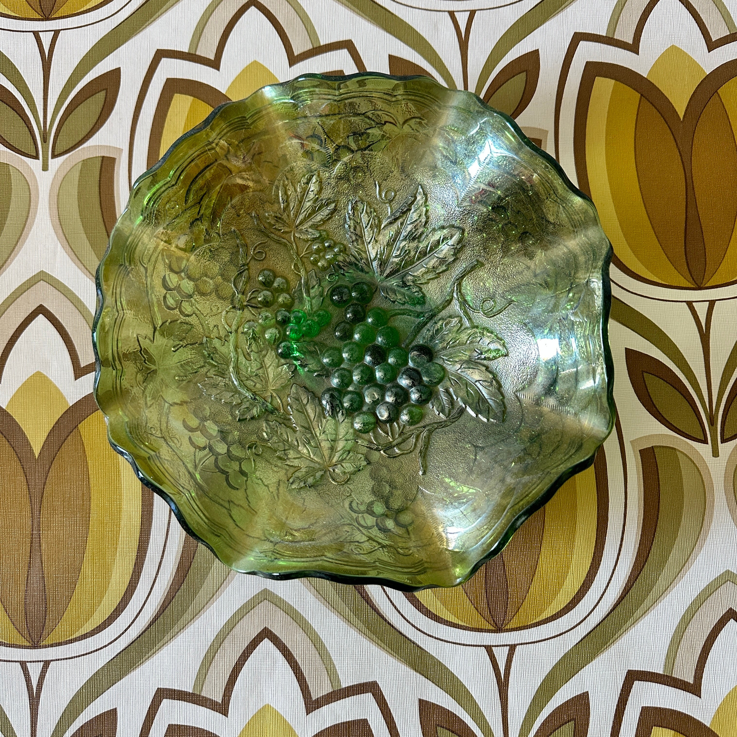 Retro Green CARNIVAL Glass Bowl
