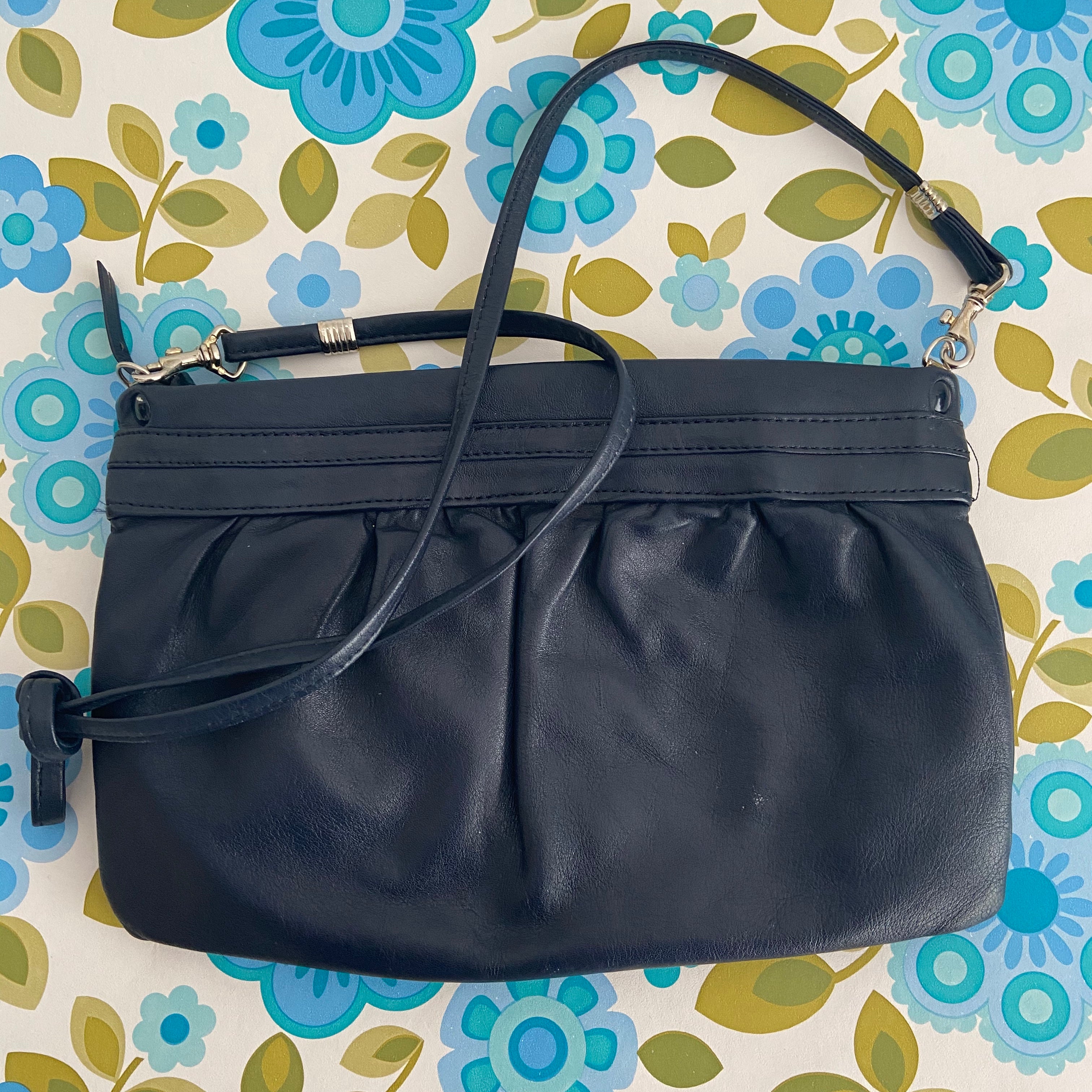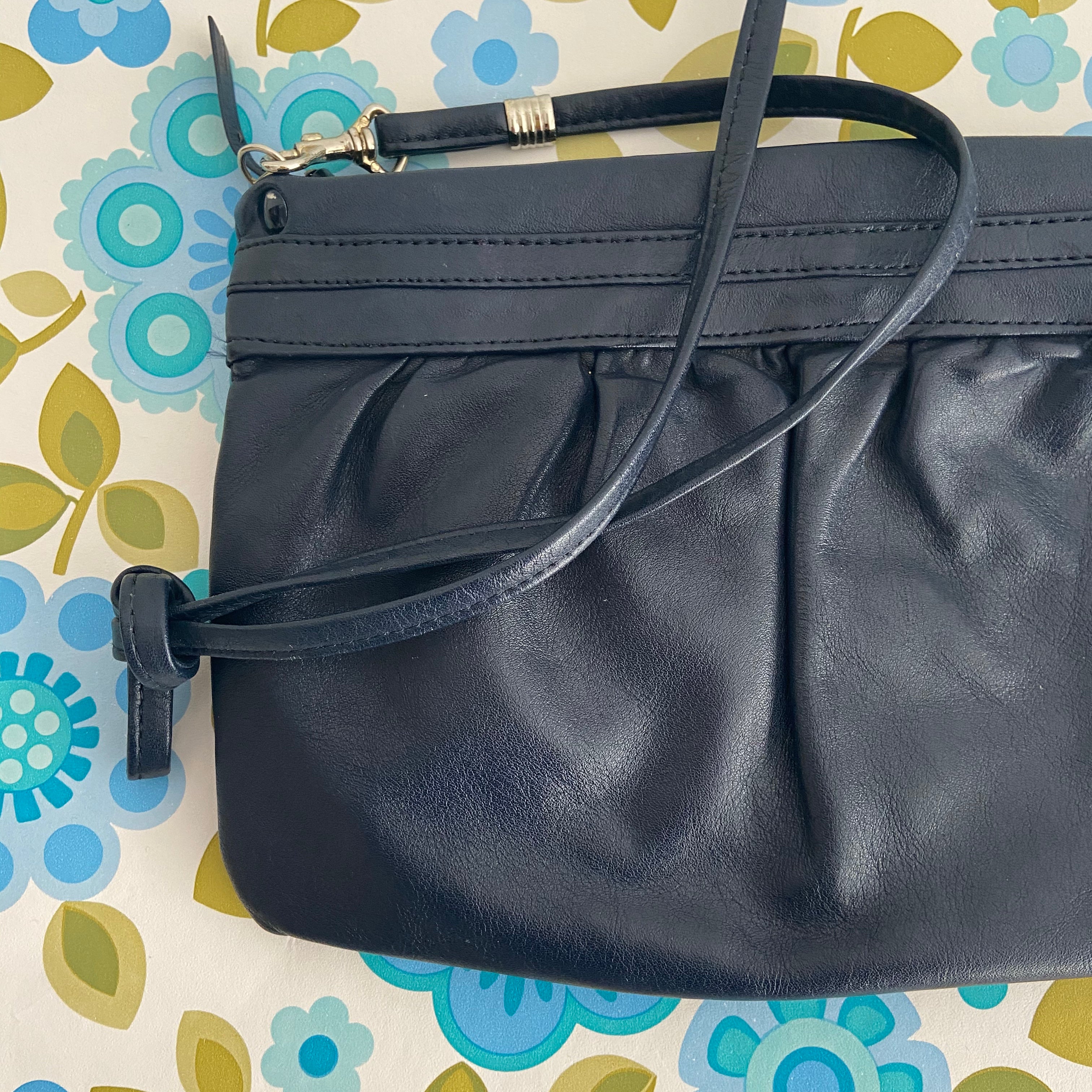 GOLDCREST vintage Handbag GENUINE LEATHER Navy Blue